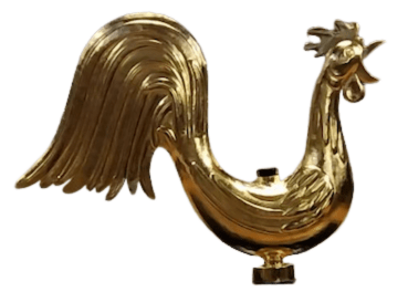 Installé en 1863 lors de la grande rénovation et de l’agrandissement de l’église réalisé par Eugène Millet, élève de Viollet le Duc, le coq, témoin sans parole de l’Histoire, sera réinstallé en haut de la flèche, au dessus de la croix. La flèche et la croix retrouveront, eux aussi, leurs décors dorés d’origine.